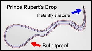 In the strange world of glass, few phenomena are as baffling, or as beautiful, as Prince Rupert’s Drops. These tadpole-shaped beads of glass have puzzled scientists for over 400 years. Strike the bulbous head with a hammer or even a bullet, and they hold firm and can withstand forces up to 664,300 Newtons (nearly 67,740 kilograms). But tap the fragile tail with your fingertip, and the entire structure explodes into dust at almost the speed of sound.